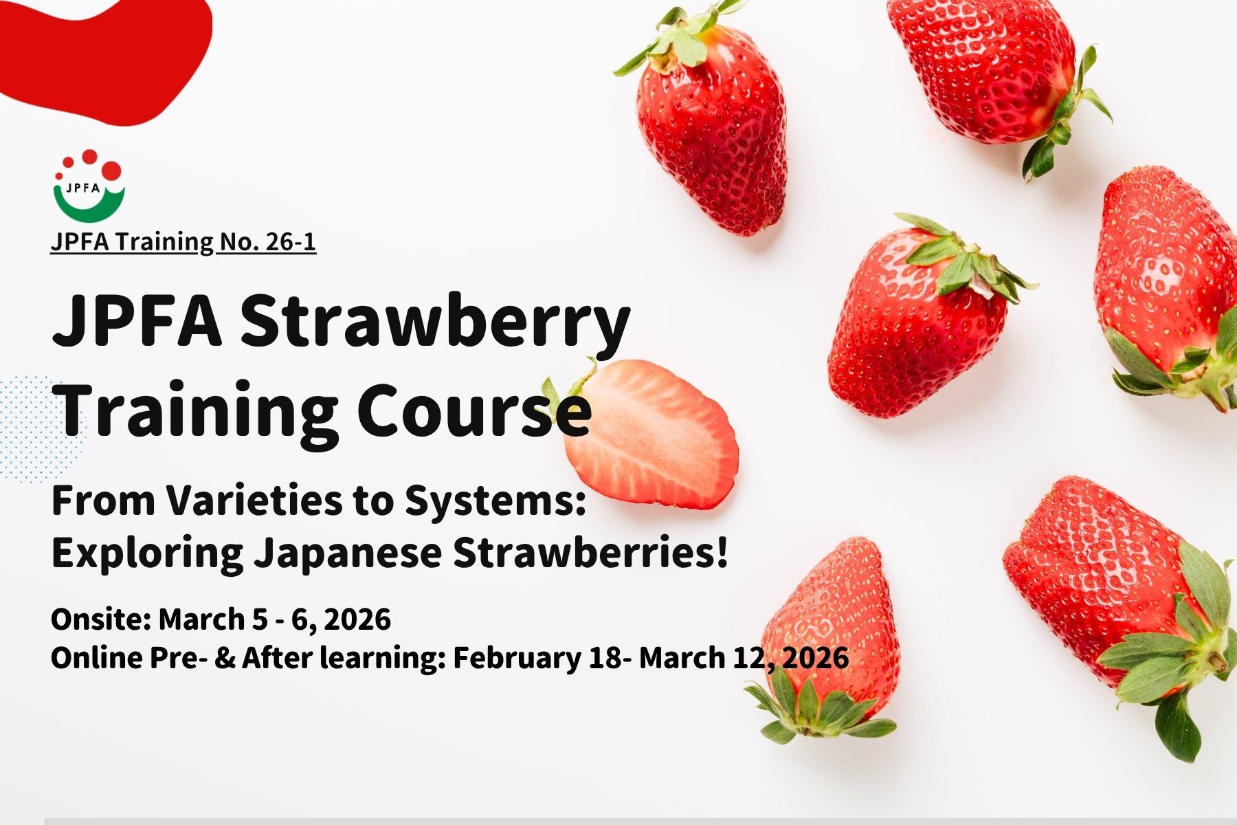 Welcome to the Japan Plant Factory Association (JPFA) training program. Our aim is to nurture the next generation of experts in both academia and industry for the future of plant factories with artificial lighting (PFALs) and controlled-environment agriculture. Our courses are taught by professionals from academia and industry who provide a conceptual and technological framework to support practical applications in relevant fields.